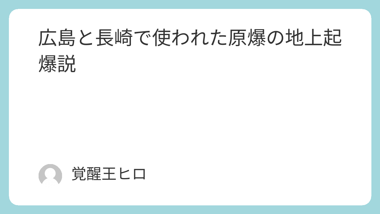 歴史の真実や陰謀論を調べるにあたって広島と長崎で使われた原爆の地上起爆説というものが存在します。